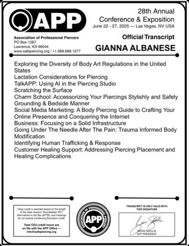 Toro's goal is to elevate your experience, creating positive relationships with clients is a top priority here. Only the best jewelry is supplied, and all components of the studio is modeled after APP guidelines - the golden standard for piercings.